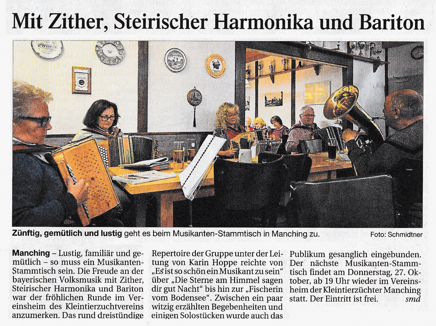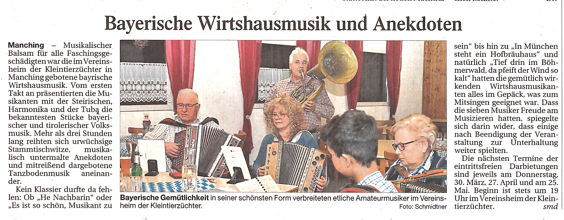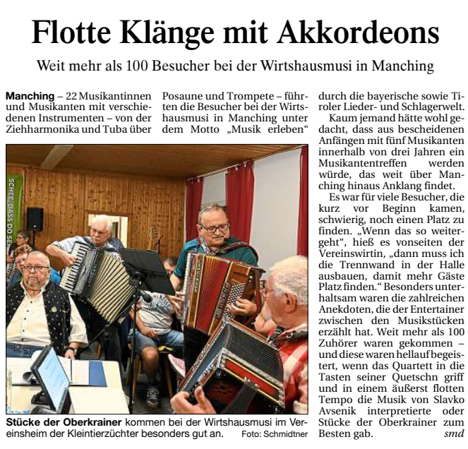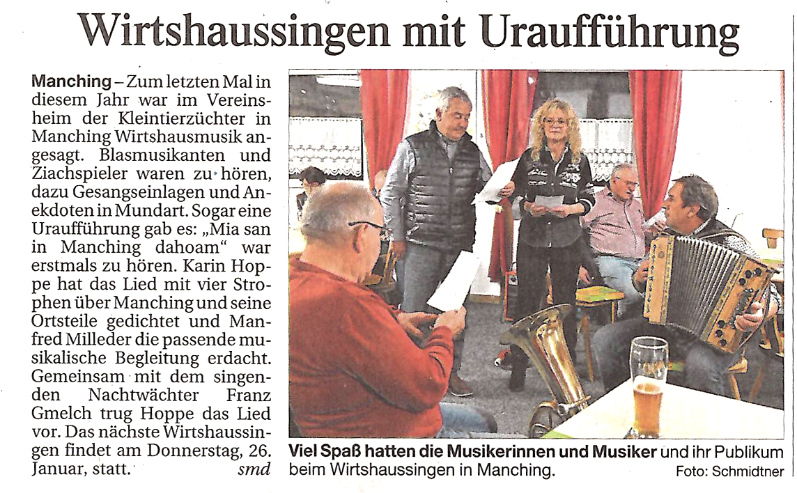 Wir freuen uns auf Euch bei der nächsten Manchinger Wirtshausmusi!
