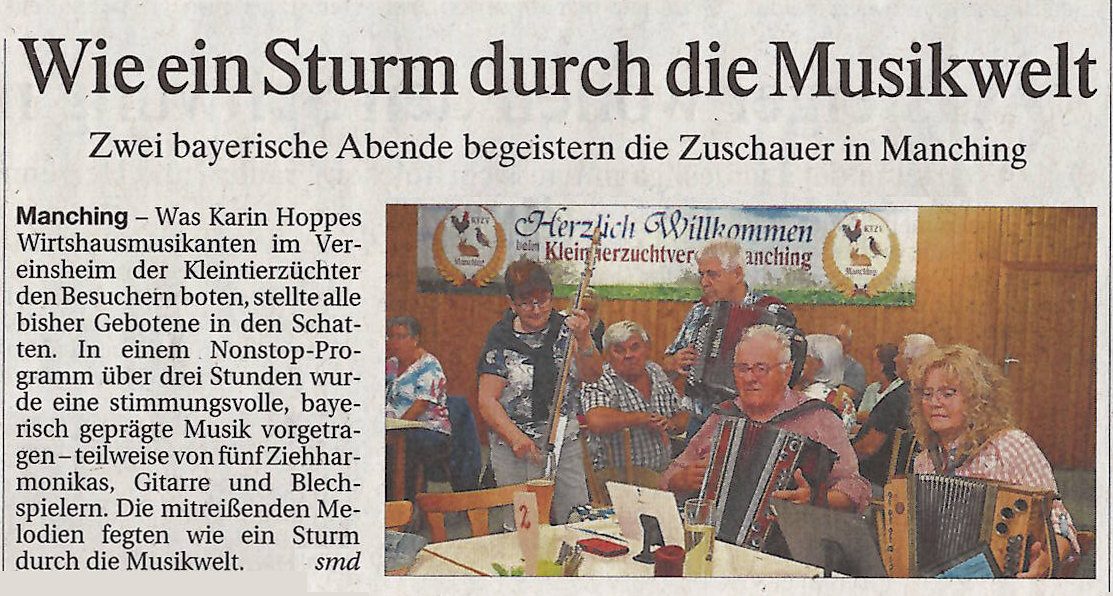 Die "Manchinger Wirtshaus Musi" begeisterte derart viele, dass aus Platzmangel in der Gaststube der Manchinger Kleintierzüchter ein Umzug in die Ausstellungshalle nötig wurde.