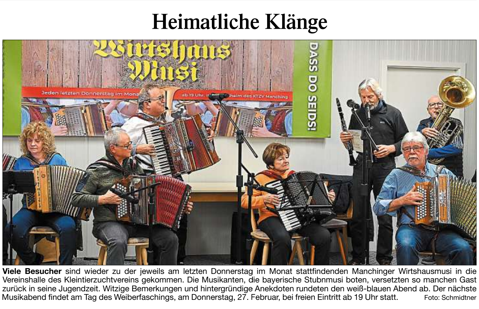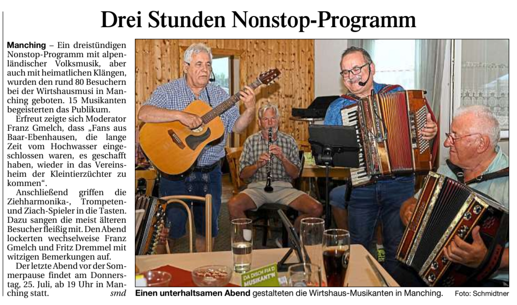 Wir freuen uns auf Euch bei der nächsten Manchinger Wirtshausmusi!